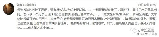 (游客上海上海)做为 9年的养护工表示,我有2种方法完成上面试验。1、一颗把根部皮剥了,再种好,靠杆子水分营养 维持。差不多一个月会出现 和被 言语霸凌 那颗巴西木样子。2、一颗放在水桶内 浸水 ,水完全浇透。大家对比视频开始的巴西木,被夸赞的叶片和视频最开始巴西木相比叶片明显扭曲,这是缺水的征兆,那颗言语霸凌 的巴西木是非常缺水的征兆。 植物是有意识,比如趋水、向光,但听懂人类语言,感受人类情绪………