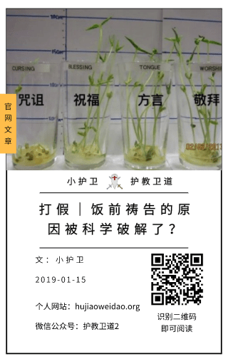 暂且不说“水知道答案”是伪科学,就算它真的是科学的。如果饭前祷告真的能用“水知道答案”来解释,那么,小护卫认为,我们饭前不必祷告了!