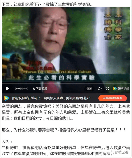 各位弟兄姊妹,用这种伪科学和泛神论思想来解释为什么要饭前祷告真的合适吗?