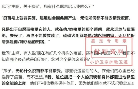 疫情发生以来,这类说法又出现了一个新的“变种”——有不少自称为先知的人冒出来说:疫苗中含有人体芯片,一旦接受了疫苗,就是受了兽印……