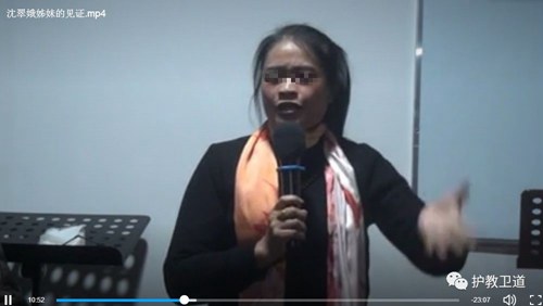 视频是这位名为“沈翠娥”的“姊妹”在某教会讲自己天堂地狱游历的见证。