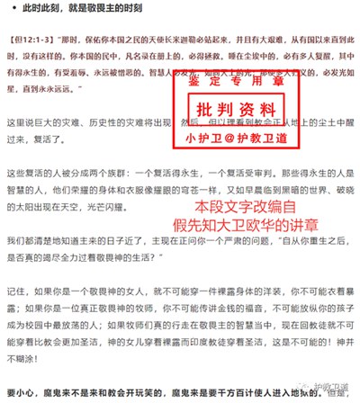 在之前的文章中,小护卫已经指出,网络上流传的《成圣之路》系列之中有很多文章是改编自假先知大卫欧华的讲章。