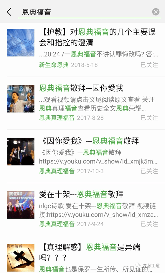 小护卫在此分享几个识别“恩典福音派”公众号的方法,希望对大家有所帮助。