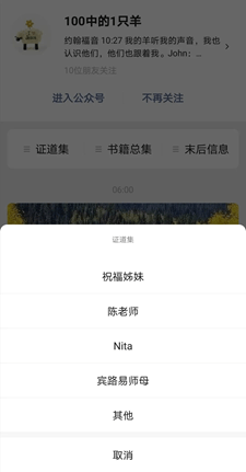 “证道集”中的二级菜单为“祝福姊妹”、“陈老师”、“Nita”、“宾路易师母”和“其他”。