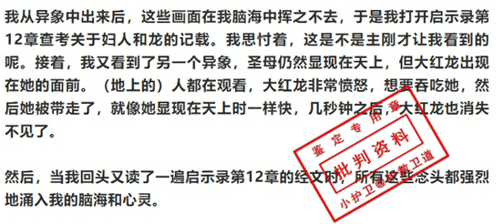 接着,“娜娜”又看到了“圣母和大红龙”的异象。