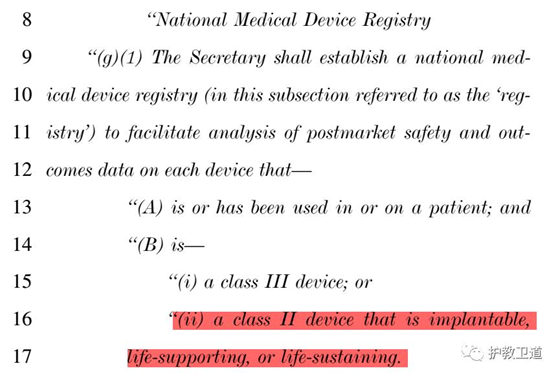 法案中明明白白地讲,对保障和维持生命之用的可植入II级设备需要建立国家医疗器械注册表。