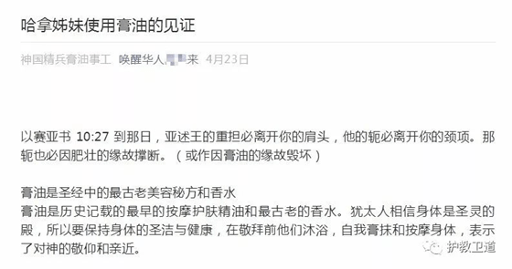 我在公众号上搜索了一下,找到了几篇宣传这款“上帝亲自制造的圣膏油”的文章。