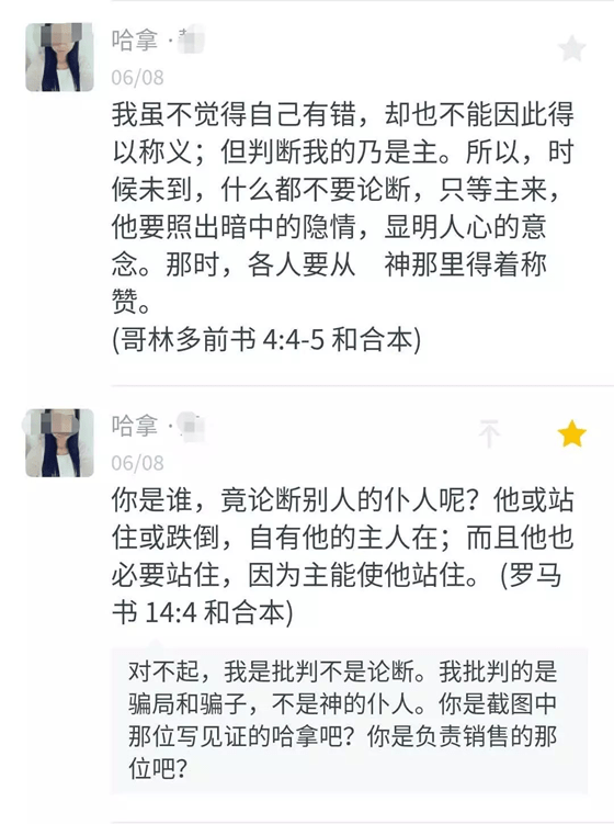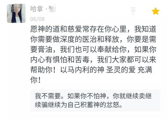 】以上截图中的留言者“哈拿·*”就是那位写了《哈拿姊妹使用膏油的见证》的作者,同时也是负责销售“上帝亲制圣膏油”的人员(其文章中给出了联系方式)。