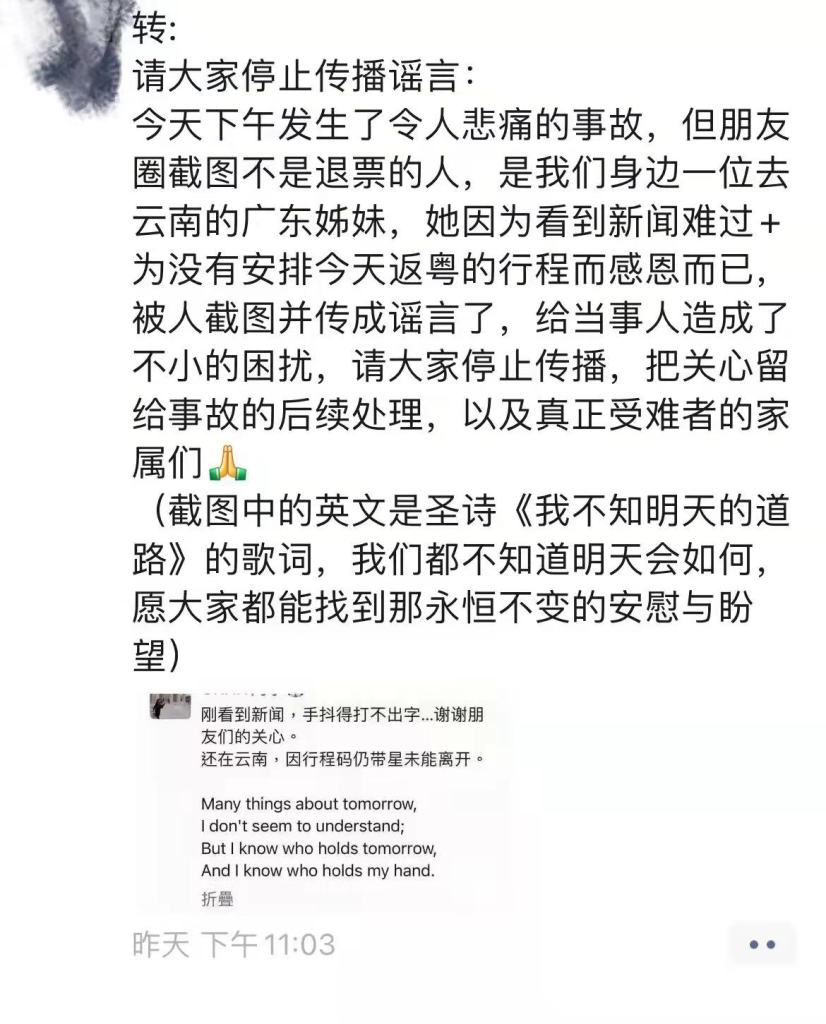 发《我不知明天的道路》的那位姊妹,并没有买票,不是退票者,不是真正意义上的空难幸存者,和21日早上退票的辛女士不是同一个人。