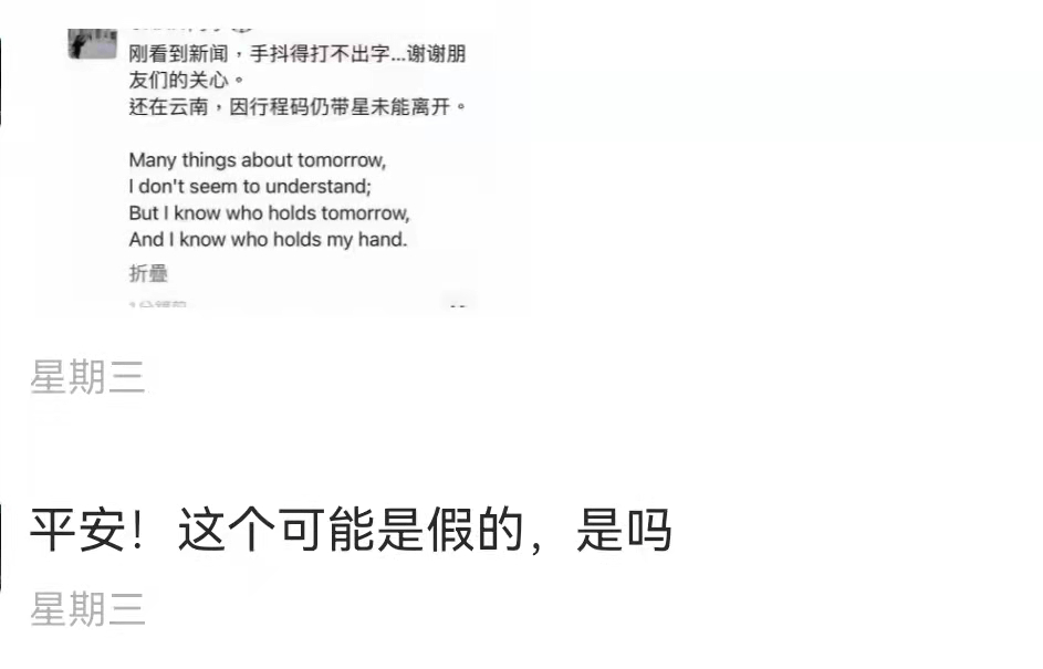 在“主内”(以及“伪主内”)自媒体和弟兄姊妹之间,传的最多的,是一张带有英文圣诗《我不知明天的道路》的朋友圈截图。