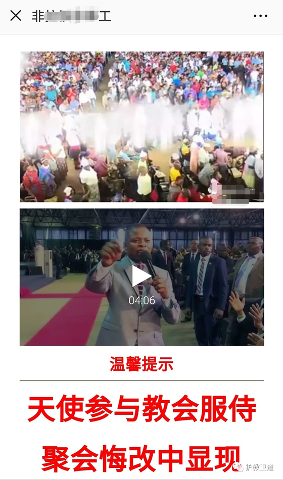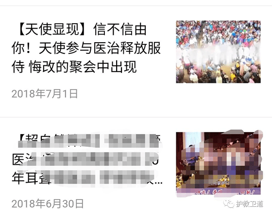该读者所说的公众号也是极端灵恩派的。以前就曾发过该“天使显现”的视频。