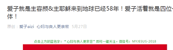 5月27日,〖心妇与良人更亲密〗发布了《爱子就是主容颜&主耶稣来到地球已经58年!爱子活着就是四位一体!》一文。