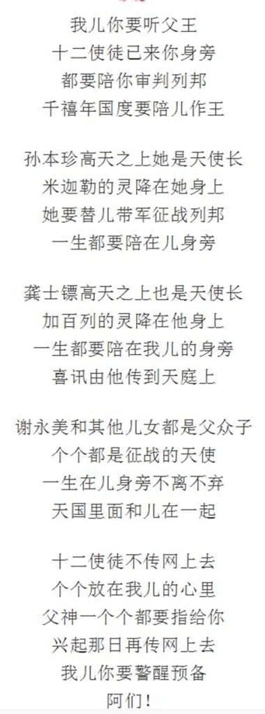 按“爱子”那些被视为启示的打油诗,孙本珍和龚士镖分别是天使长米迦勒和加百列,其他人也都是天使。