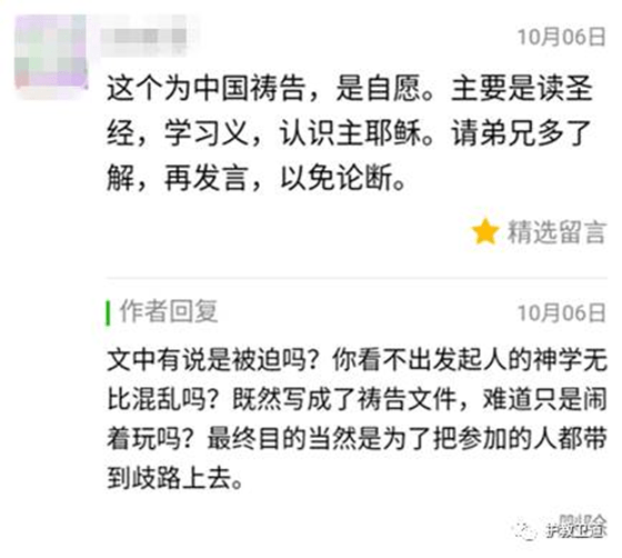 我承认为中国祷告是自愿的,该小组每周会统计所读经文章数和祷告次数。在祷告事项中也说明,对自己可以认同的事项祷告就行。然而,这并不能说明该小组或所列出的祷告事项没有问题。