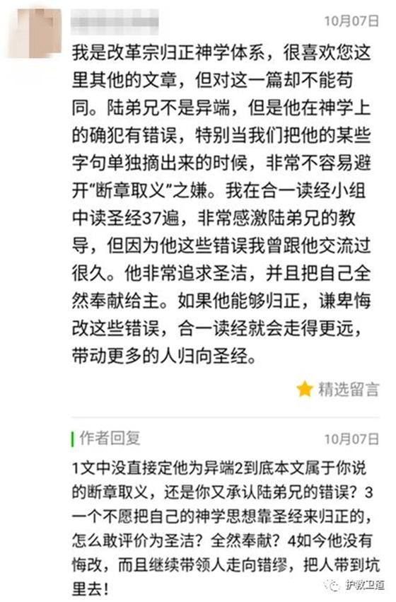 据我所知,该留言者是该小组中的“高层人士”。自称是改革宗归正体系的,也承认发起人陆弟兄在神学上有错误,并和陆弟兄交流过很久。