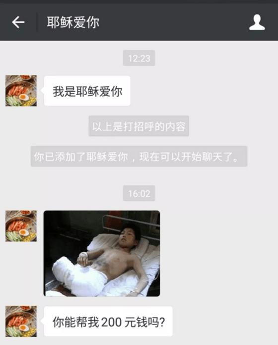 好家伙,一加上好友就问对方能不能帮他200元钱啊!