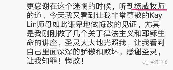 这是一位姊妹在Gloria的推荐下,听了恩典福音派杨威的讲座: