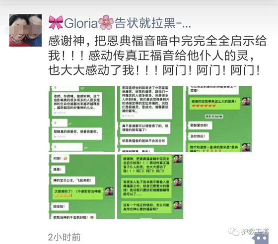 Gloria在朋友圈“感谢神”,“把恩典福音暗中完完全全启示给了”她。