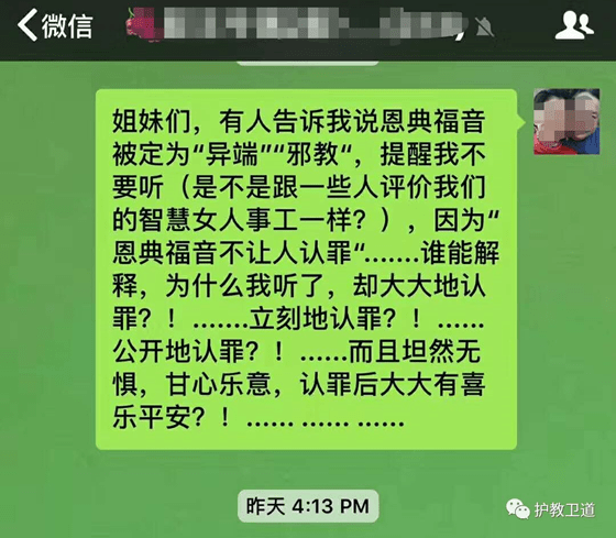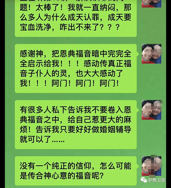 有人提醒恩典福音派是异端,她仍旧不听,据读者说她还把提醒者赶出了群。
