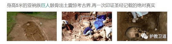可疑文章1:身高5米的亚衲族巨人骸骨出土震惊考古界,再一次印证圣经记载的绝对真实(2017.06.18)
