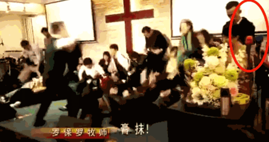 〔男子前面那位女士:“我也在低头默祷,没和人牵手,也没注意看大家的反应,我也被圣灵遗忘了,连找茬的小护卫都忽视了我……都怪讲台上的鲜花将我遮挡了……”〕